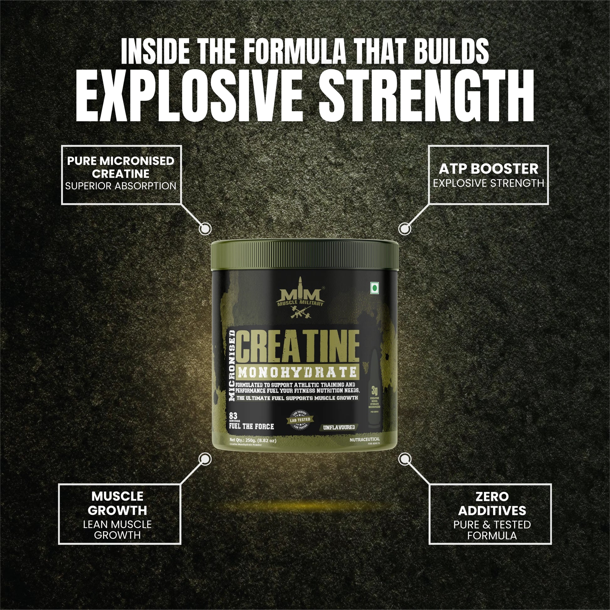 "Pure Creatine Monohydrate designed to complement strength-focused training. Ideal for individuals with active fitness routines, it helps support post-workout recovery and training consistency."