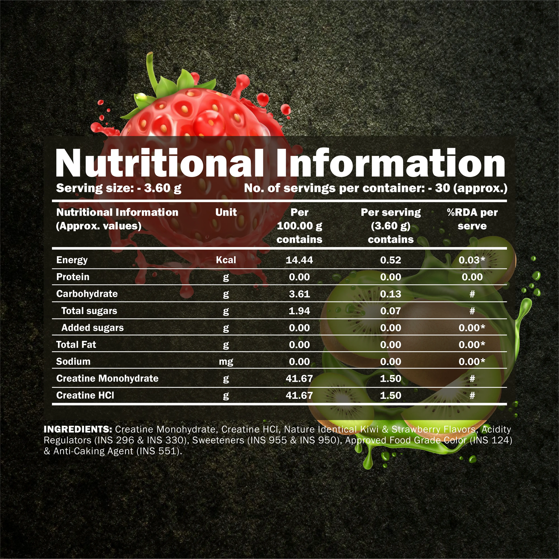 Take your workouts to the next level with our Creatine Monohydrate + HCL formula, now in a vibrant dual-flavor combo: Cola & Strawberry-Kiwi. This advanced blend combines the proven power of creatine monohydrate with the enhanced solubility and absorption of creatine HCL, helping you boost strength, power, and endurance while promoting faster muscle recovery.