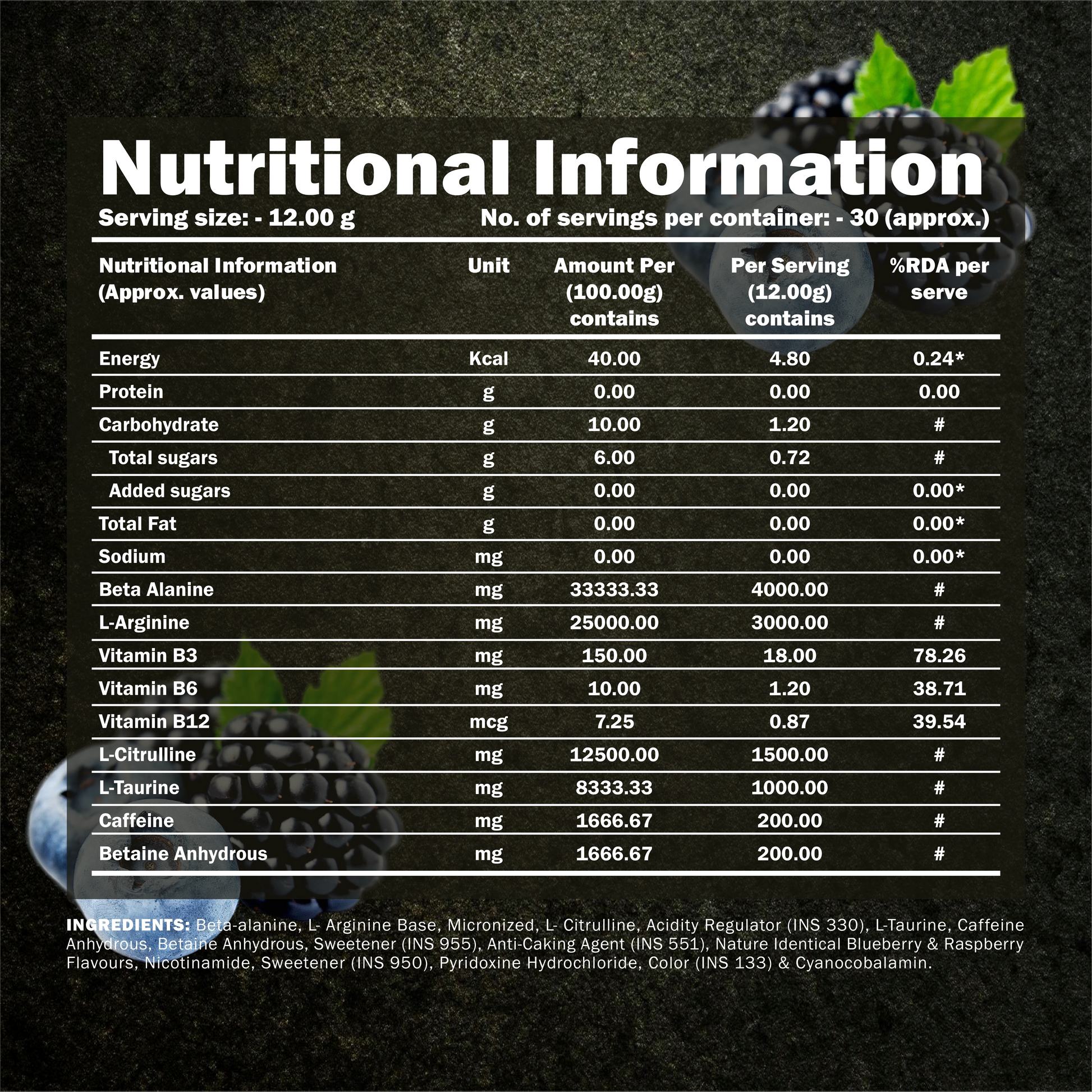 Beta-alanine, L- Arginine Base, Micronized, L- Citrulline, Acidity Regulator