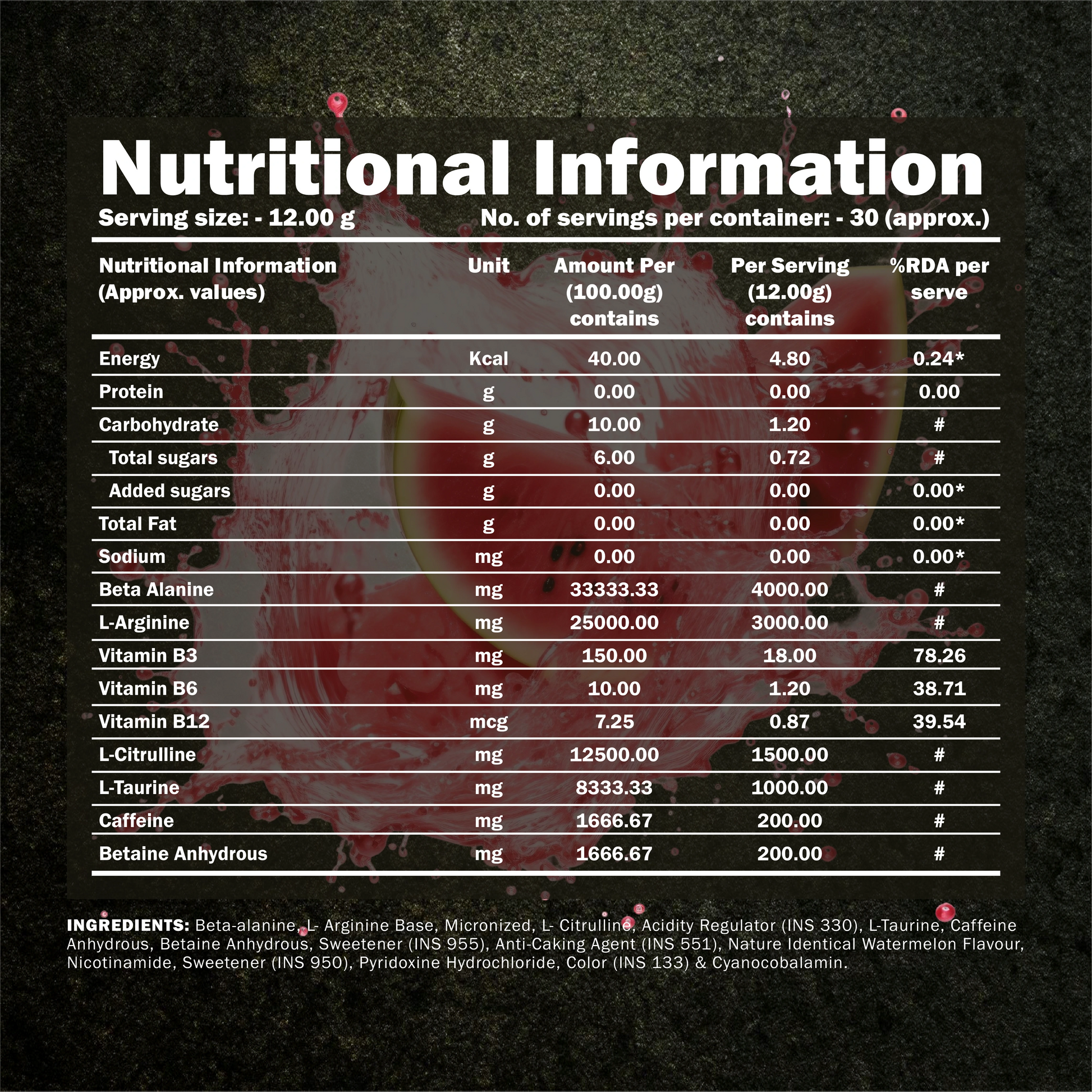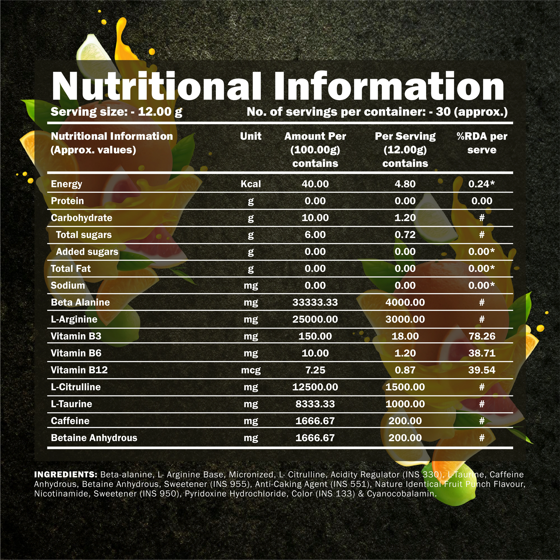 Beta-alanine, L- Arginine Alpha ketoglutarate, Micronized, L- Citrulline,