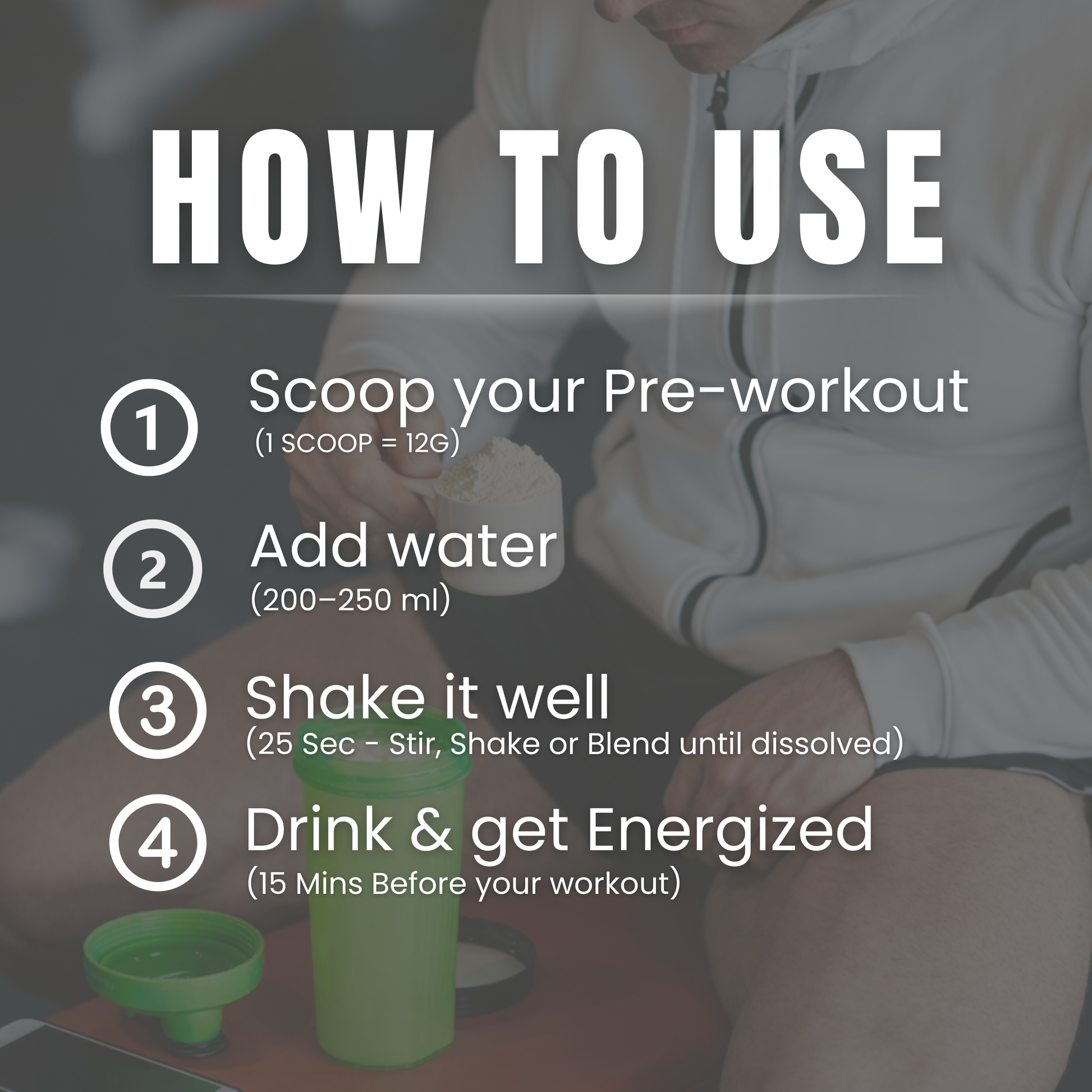 Mix one scoop of Shot Gun Pre-Workout with 200β250 ml of water and consume it 20β30 minutes before your workout. For beginners, starting with half a scoop is recommended to assess tolerance. It can be taken on training days only and does not need to be consumed daily on rest days.
